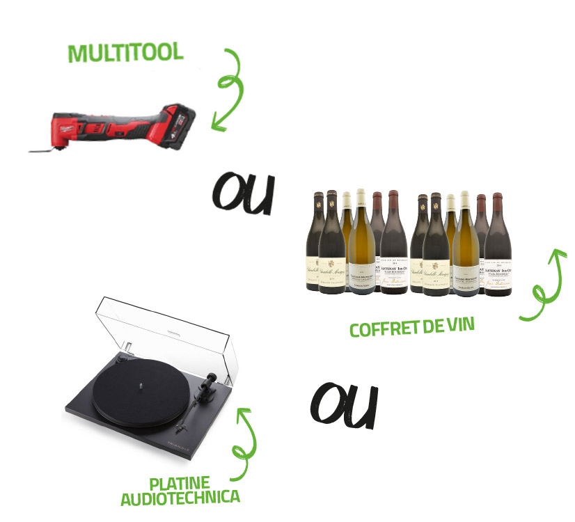 Outillage professionnel, coffrets de vins, électronique, équipement loisir ou gastronomie, cumulez des points pour choisir votre meilleur cadeau, il y en aura pour tous les gouts ! Alors découvrez maintenant les cadeaux à gagner selon le nombre de points cumulés durant l'opération et faites vos jeux !
