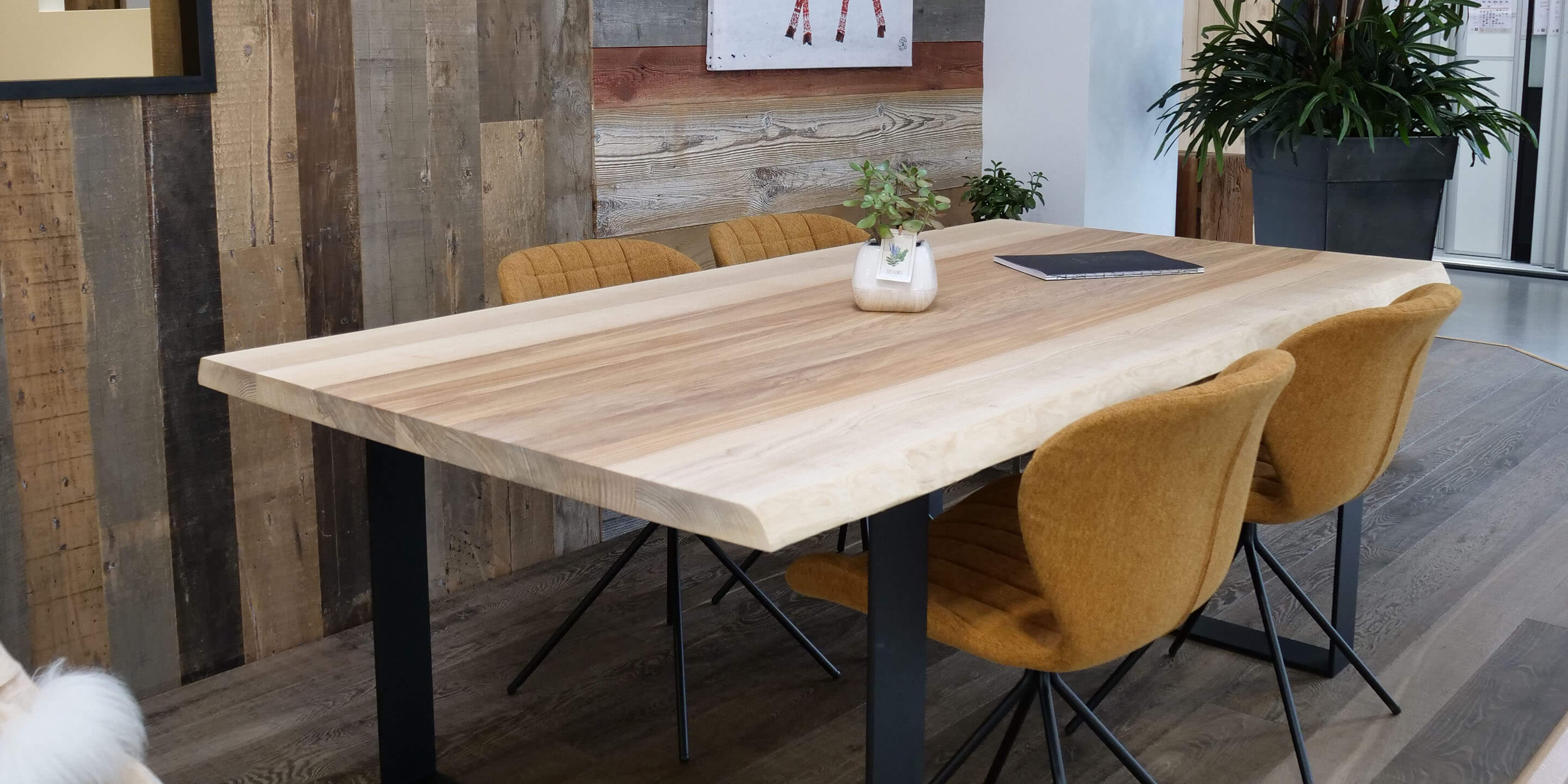 Disponible en vieux chêne ou en frêne "olivier", le 2 bords flache est parfait pour la réalisation de tables, bars ou tout aménagement de caractère.