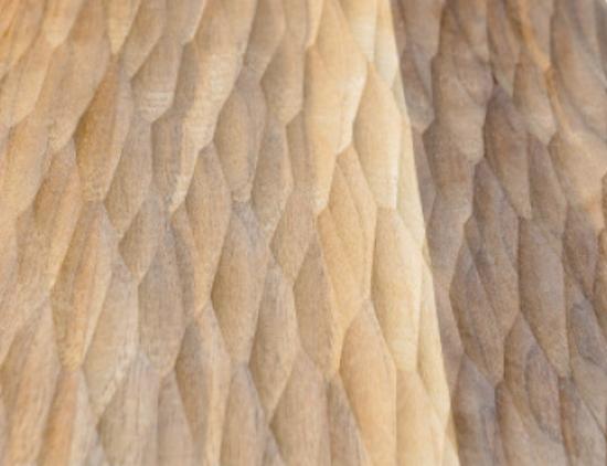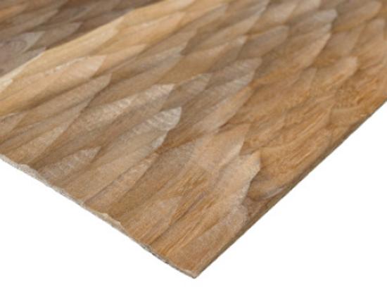 Placage en bois avec motifs en reliefs crées à partir d'un processus de fraisage